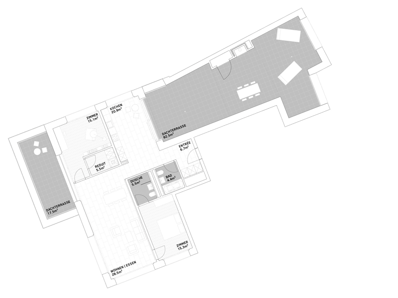 Die Wohnungen und Gewerbeflächen im Furnierwerk besitzen sehr unterschiedliche Grundrisse, daher ist für jeden individuellen Wunsch etwas dabei – von der praktischen 1.5-Zimmer-Atelierwohnung zum sonnigen Innenhof bis hin zu grossen 4.5 Zimmerwohnungen mit Dachterrassse und Aussencheminée.